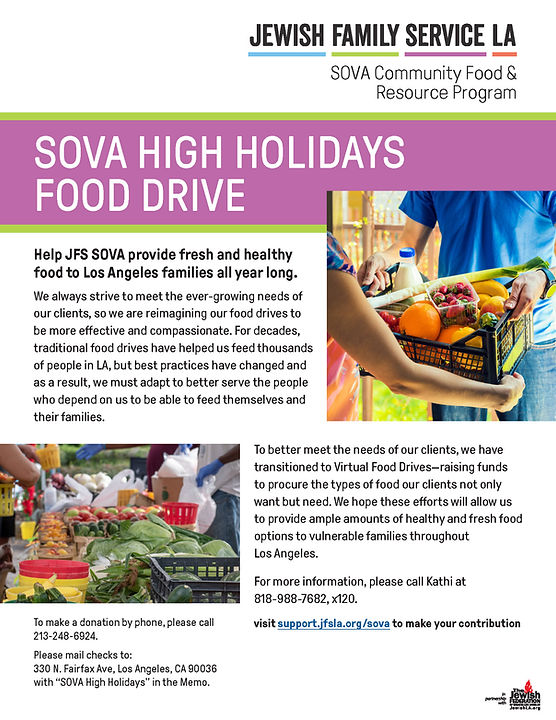 Established in 1854 Jewish Family Service JFS of Los Angeles is a multi-service agency whose goals are to strengthen and. Jewish Family Service of Los Angeles. Jewish Family Service JFS SOVA Community Food Resource Program is now providing prepackaged bags of food to help minimize the risk to both clients and volunteers.
